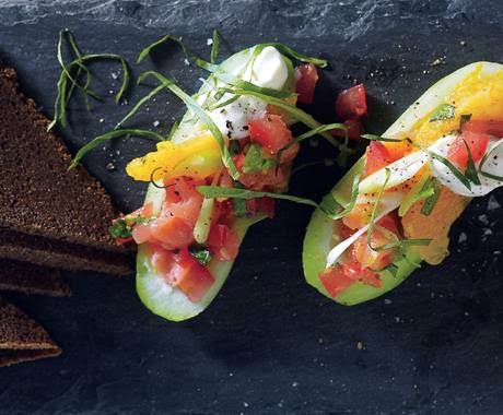 - 6 ounces smoked salmon, cut into 1/2-inch squares