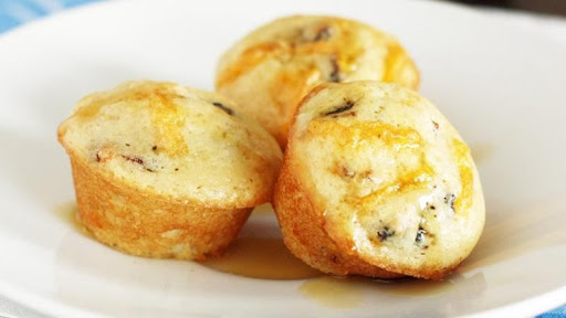 Serve pancake bites warm or at room temperature drizzled with maple syrup or sprinkled with powdered sugar.