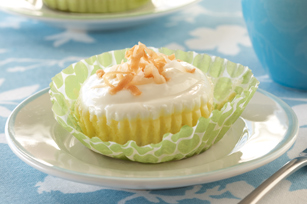 Mix sour cream and remaining sugar. Spoon over cheesecakes; spread to evenly cover tops. Sprinkle with coconut. Refrigerate.