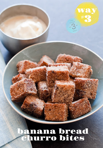 - 1/2 recipe chocolate chip, coconut banana bread, cut into 1 in slices