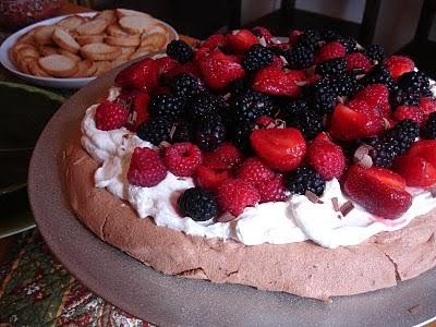This stunning chocolate meringue piled high with whipped cream and fresh berries looks over the top, but this airy dessert won't weigh you down.