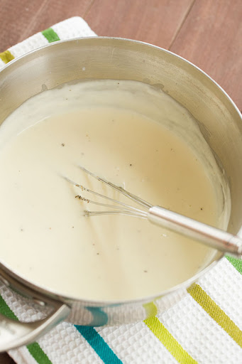 1. In a medium saucepan placed over medium heat, melt the butter. Add the flour and cook, whisking constantly, until the flour turns light brown and emits a nutty aroma.