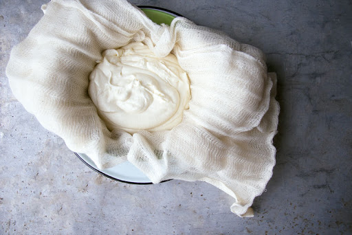 Fill a small strainer with several layers of cheesecloth (I use 3 layers) and put a small bowl under the strainer. Pour the cooled mascarpone mixture into the cheesecloth and stick the entire bowl with the cheese and cheesecloth in the fridge overnight to strain out the whey. My cheese usually releases only a few tablespoons of whey, but the mascarpone still comes out thick and creamy in the morning. Who could have imagined that a delicacy like this could be so easy to make!