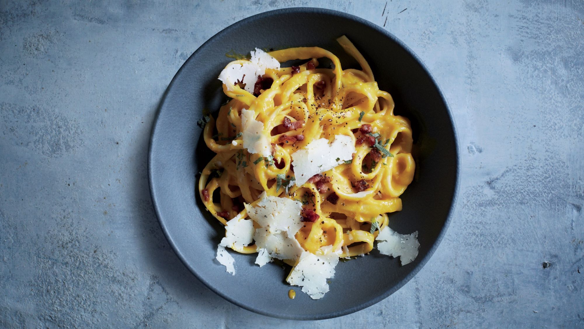 Paleo Winter Squash Carbonara with Pancetta and Sage