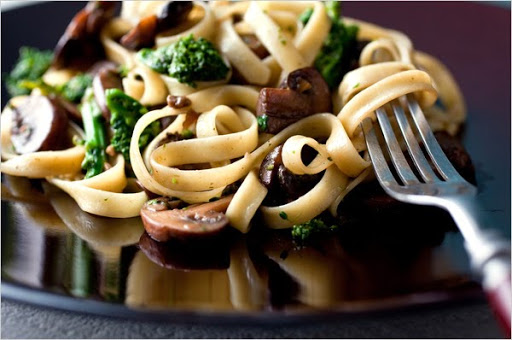 FETTUCCINE w/BRAISED MUSHROOMS & BROCCOLI