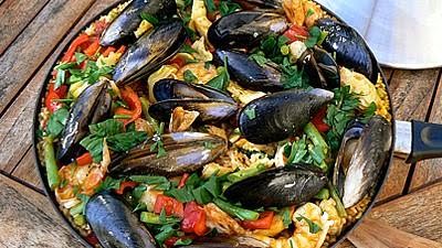 Turn off the flame, cover it with foil and let it sit for a minute or so, so the Spanish flavours can do their flamenco