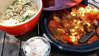 Coat shallots, sweet potatoes, fennel, capsicum, eggplant and zucchini in marinade mix and lightly fry in big heavy based saucepan or tagine.