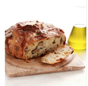 In a medium bowl, stir together flour, salt, and yeast; stir in cheese and olives. Add water and, using a wooden spoon or your hand, mix until a wet, sticky dough forms, about 30 seconds, adding additional water, 1 tablespoon at a time, if needed. Cover bowl with plastic wrap and let stand at room temperature until dough has doubled in size and surface becomes dotted with bubbles, 12 to 18 hours.