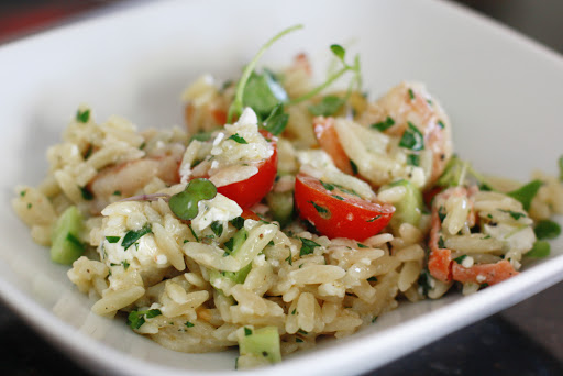 3. Add tomatoes, cucumbers, onions, parsley, mint and feta cheese to pasta