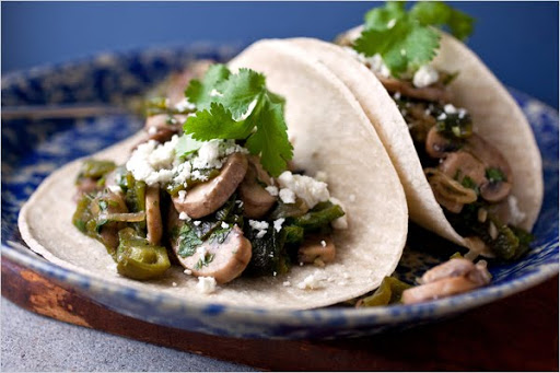 3. Wrap the tortillas in a heavy kitchen towel and place in a steamer basket over 1/2 inch of water. Bring to a boil, cover the pot and steam one minute. Turn off the heat, and allow to sit for 15 minutes without uncovering. Pass the tortillas, top with the mushroom mixture, sprinkle with a little cheese if desired, fold the tortillas over the filling and enjoy.