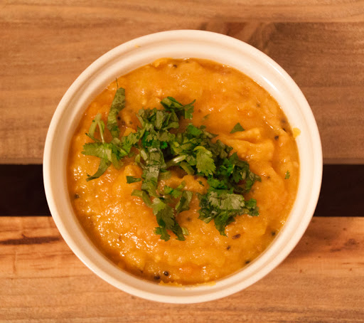 2.When your lentils are close to done, heat oil in a medium pot over medium-high heat. Add a couple cumin seeds to test out the heat of the oil. If they pop, the oil is ready to go! Add all of your cumin seeds and mustard seeds and let cook for 10-15 seconds (until the seeds pop). Then add your coriander, turmeric, cayenne, onion, tomato, and garlic, stir for 30 seconds, and turn the heat down to medium low. Let it cook until the onions become translucent and the tomatoes break down.