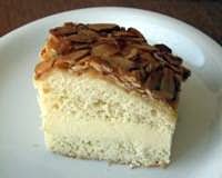 This lovely rendition of Bee Sting Cake, or Bienenstich Kuchen, is a yeast based cake baked in an American 9 inch by 13 inch pan, split and filled with a pastry- and whipped cream mixture. All ingredients can be found in American supermarkets, which makes this a German cake that is easy to put together.