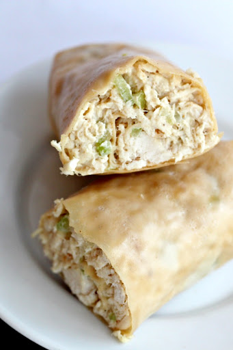 Toss chicken into the bowl, combine a few times with a spatula and throw in finely chopped celery.
