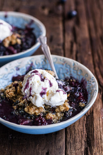 Add the softened butter and use your fingers to crumble it into the oats mixture until everything is moist and the butter is evenly distributed. Sprinkle the crisp over the berries. Bake for 25-30 minutes, until crisp is golden brown and the fruit is bubbling up and smells amazing.