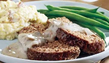 a cutting board. Let the meatloaf stand for 10 minutes before slicing.