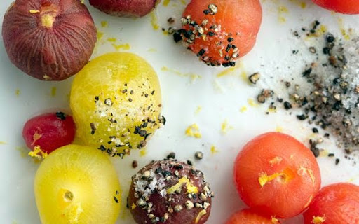 Stir together salt and pepper and serve with tomatoes for dipping.