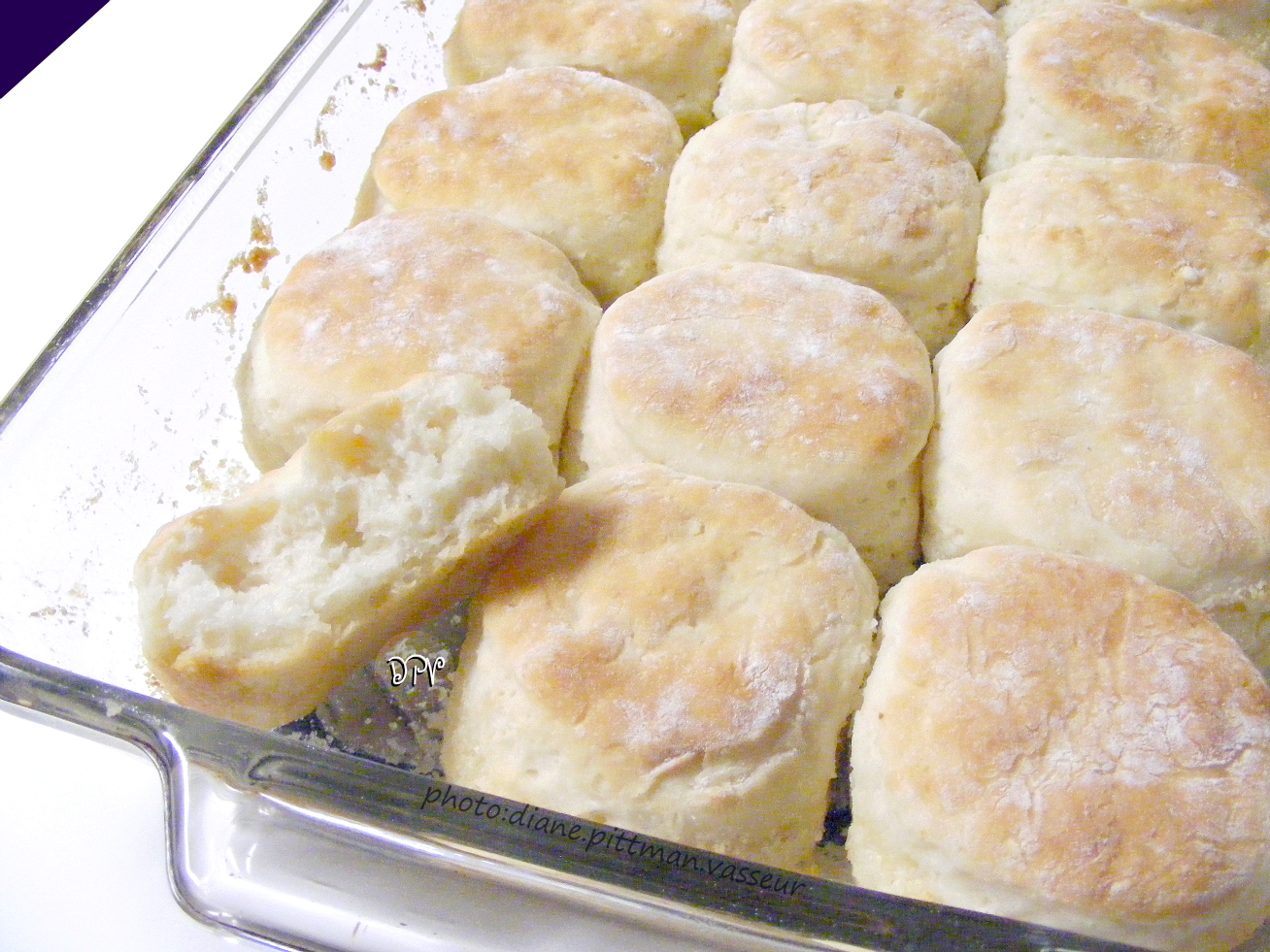 Light and fluffy, buttery fresh made biscuits are just a few minutes away. Who'd thunk 4 little ingredients could taste so good! No kneading either, just mix together, pat out and cut.