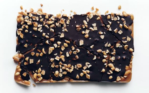 Sprinkle evenly with chopped peanuts, then freeze until chocolate is firm, about 30 minutes. Break into pieces.