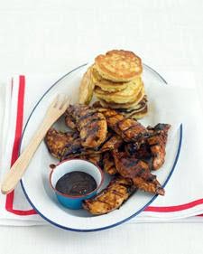 Preheat oven to 200 degrees. Remove kernels: Cut off tip of each cob; stand in a wide shallow bowl. With a sharp knife, slice downward to remove kernels. To bowl, add milk, egg, sugar, baking powder, 1/2 teaspoon salt, and 1/4 teaspoon pepper; mix. Fold in cornmeal and flour.