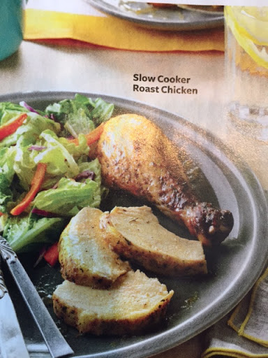 Remove chicken from slow cooker; tent with foil. Let chicken stand 15 minutes before carving.