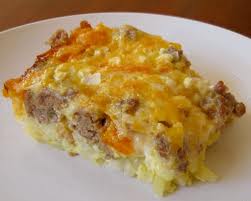 In a skillet on medium heat crumble and brown sausage - drain off fat. Meanwhile beat eggs with milk and seasonings.