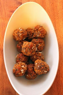 In a large bowl, combine sausage, bread crumbs, onion, and egg; mix well then form into 1/2-inch balls.