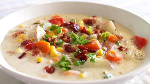 Season chowder to taste with salt and pepper. Garnish individual bowls of chowder with parsley and bacon.