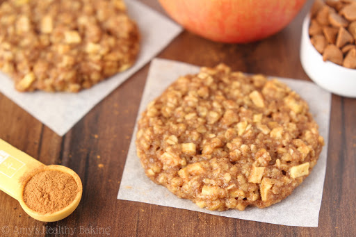 For the best results, dice the apples very finely. The larger the chunks, the crisper and less soft they’ll be. Finely diced apples will not completely soften while baking, but they won’t be quite as crunchy as larger chunks. If the cookies are stored in an airtight container for a few days, the apple pieces will naturally soften over time as well. I prefer Fuji apples, but any red apple will work. If you prefer a tarter taste, green apples would be fine too.