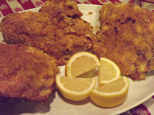 Set up three shallow bowls, one with the flour, one with the egg wash and one with the corn flake crumbs.