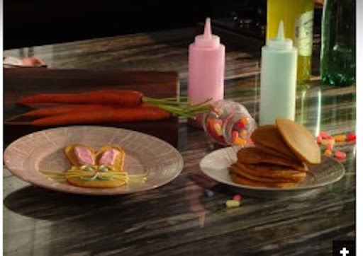 For the sweetened yogurt: Combine the yogurt, honey, orange zest and a pinch of salt. Cover and set aside in the refrigerator at least 30 minutes or up to overnight so the flavors can come together. If desired, transfer the yogurt mixture to a couple of plastic squeeze bottles and add a few drops of food coloring to festively decorate the pancakes.