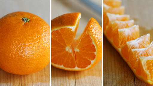 Simply lop off the ends, make a small incision in the side and carefully open to reveal easy-to-eat orange segments.