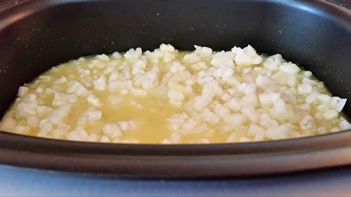 Slow cook it on low 5 hrs., then add 8 oz. cream cheese softened and cook another 30 minutes stirring occasionally. I also added chunks of ham that I had and I added that about the last hour since it was already cooked. Garnish with green onion.