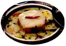 En una cazuela de barro apta para horno ponemos la merluza con el resto de ingredientes.