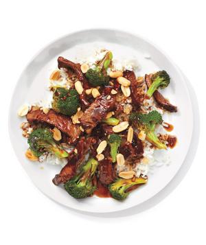 Add the steak, oyster sauce, and rice vinegar and cook, tossing, until thickened, 1 to 2 minutes.