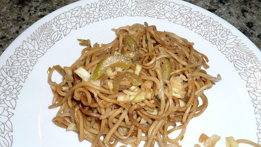 Toss Yaki Soba noodles and soy sauce mixture with the vegetables over medium-high heat for an additional 2-3 minutes or until noodles are heated through.
