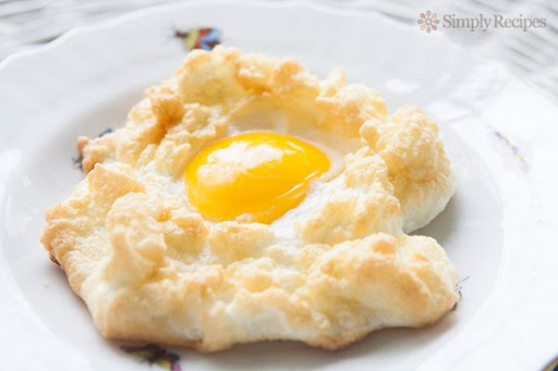 After 3 minutes, gently add an egg yolk to the center of each nest.