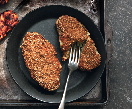 Cheese-Stuffed Potatoes with Yogurt-Spice Paste and Sesame Seed Crust