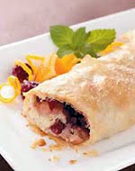 * Spread cranberry mixture over dough to within 1 in. of edges. Fold in sides. Roll up, starting at a long side. Place seam side down on prepared baking sheet.
