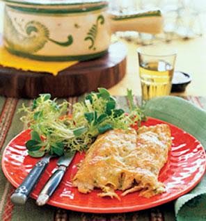 sauce in a 9" baking dish. Arrange enchiladas in a layer, seam side down.