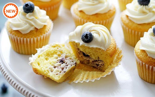 Blueberry Cheesecake-Stuffed Lemon Cupcakes with Vanilla Frosting