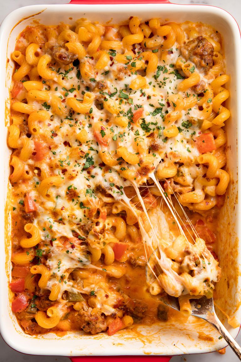 Transfer mixture to a large baking dish and sprinkle with remaining mozzarella. Bake until cheese is bubbly and golden, about 10 minutes.