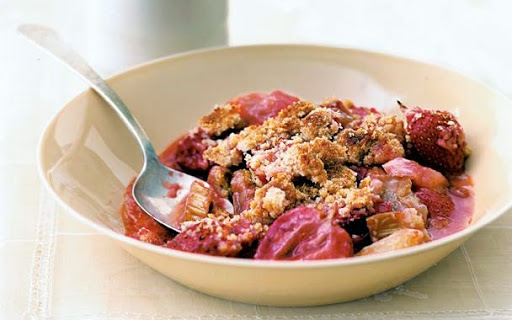 - STRAWBERRY RHUBARB COMPOTE WITH MATZO STREUSEL TOPPING