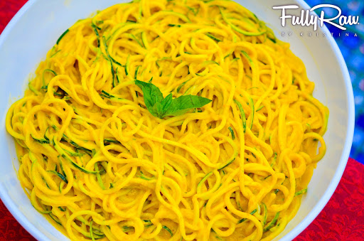 Next, blend all of the rest of the ingredients in a high speed blender like a Vitamix until completely smooth and creamy. Pour the sweet curry sauce over your noodles and mix well. Enjoy!