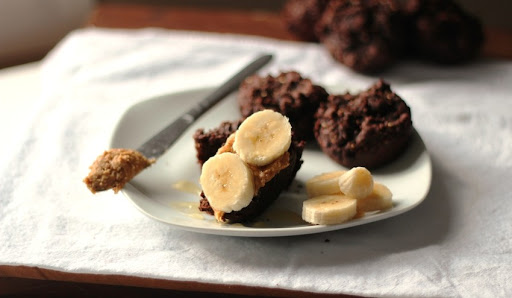 2. Peel bananas and mash in a large mixing bowl with a potato masher or fork. Add peanut butter, honey, and vanilla. Mash into bananas using fork. In a separate bowl combine cocoa powder, baking soda, salt and flour. Add dry mixture to banana mixture, using a fork to combine well.