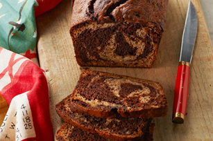 POUR half the batter into medium bowl; stir in chocolate. Spoon batters alternately into 8x4-inch loaf pan sprayed with cooking spray; swirl gently with knife.