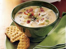 In small bowl, mix flour into milk; stir into potato mixture. Increase heat setting to High. Cover; cook 20 to 30 minutes or until mixture thickens. Stir in cheese until melted. Garnish individual servings with bacon and green onions. Sprinkle with pepper if desired.