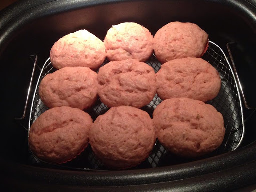 Pour mixture into cupcake pan, ¾ full. Place on rack. Place the lid and bake 20 minutes. Makes 18 cupcakes.