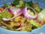 1. Tear romaine lettuce into bite sized pieces and put in large bowl.