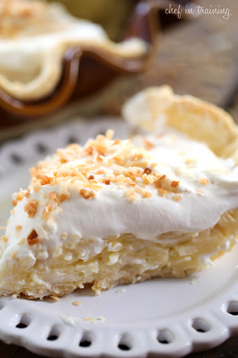 Spread evenly over pie and sprinkle the top with toasted coconut.