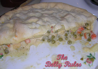 4. Spoon chicken mixture into your pie crust lined pan. Fill it to the top. Roll out remaining crust and lay on top of chicken mixture. Fold crusts together around the edges. Make sure to cut vents in the top crust.